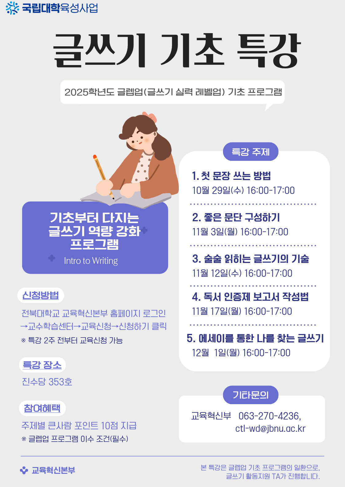 [교육혁신부] 2025학년도「글렙업 기초」프로그램 글쓰기 특강 운영 안내